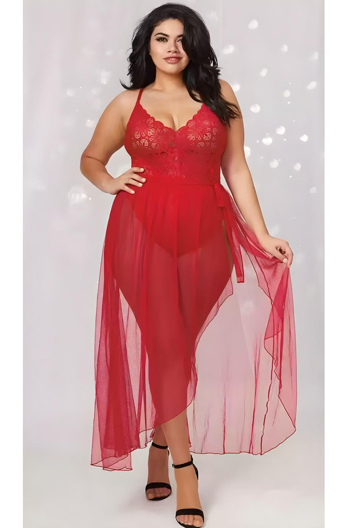 Kırmızı Uzun Etekli Fantezi Gecelik Takım